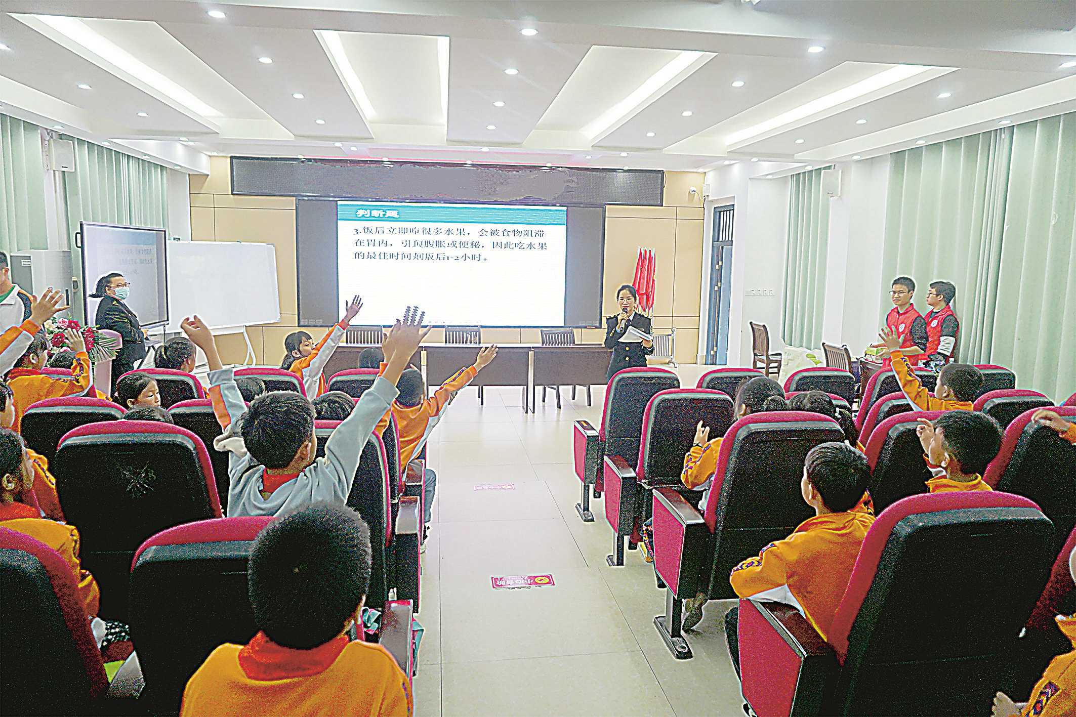 五月十一日,广西壮族自治区忻城县市场监管局在忻城县民族小学开展“制止餐饮浪费进校园”宣传活动,通过上好一堂课,与学生们共享美好“食”光。图为同学们踊跃参与,抢答与节约食品相关的问题。□黄继秋 蒙敏会/摄影报道