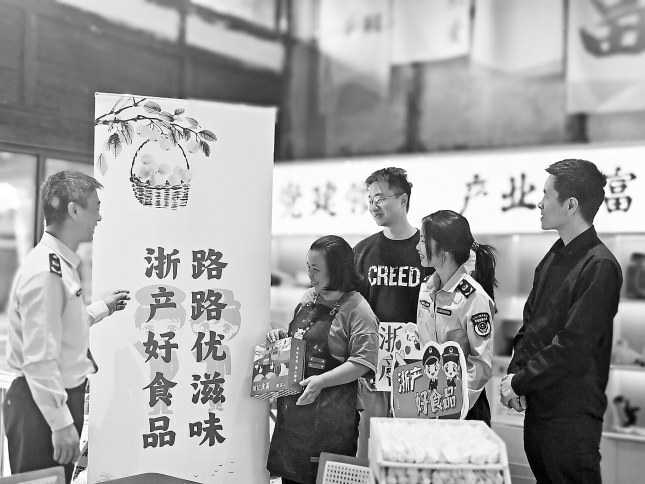 图①:面向老年人开展保健食品防骗宣传。|图②:开展浙产好食品宣传。|图③:邀请横街小学师生参观食药科普基地。
