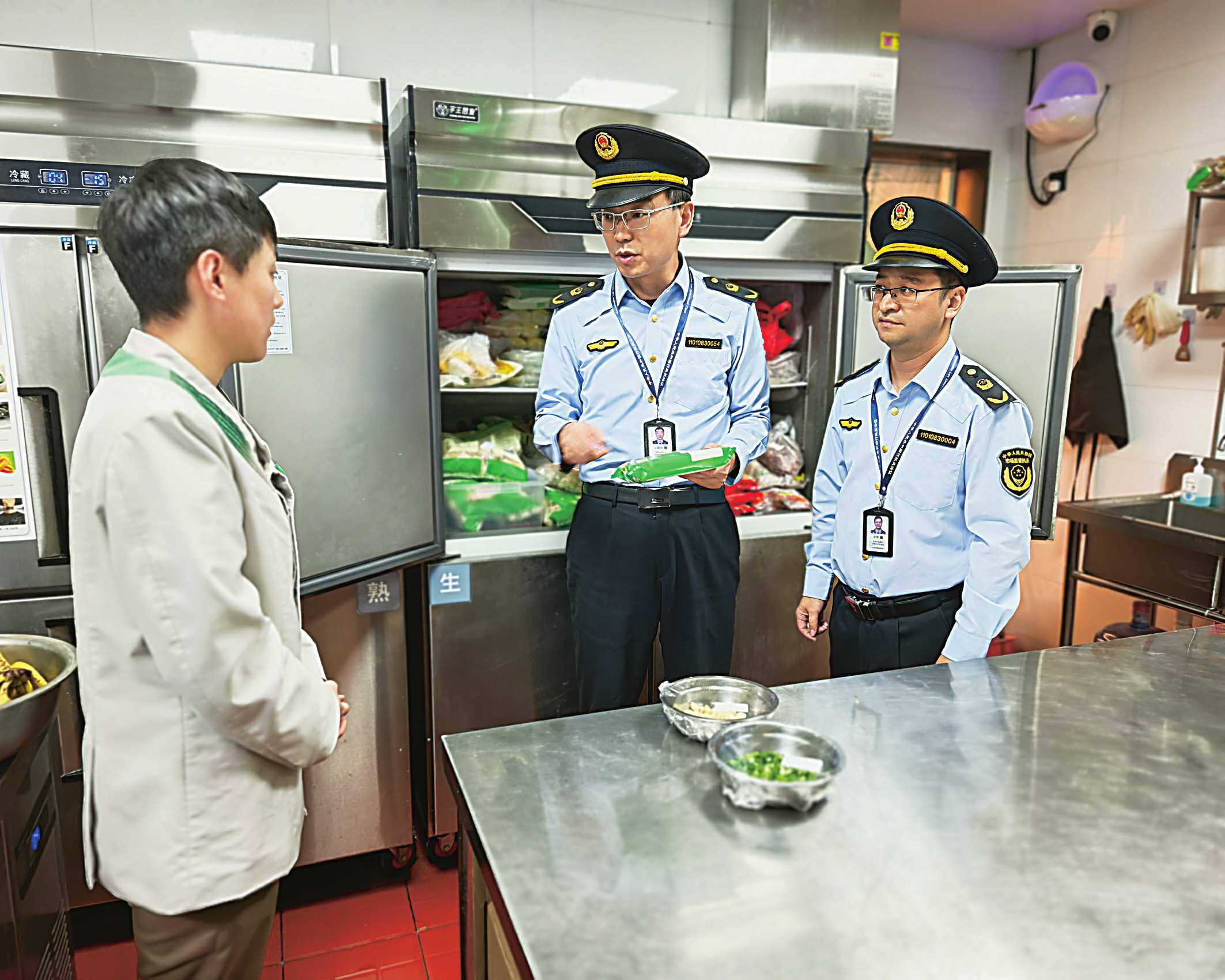 连日来,浙江省杭州市钱塘区市场监管局对辖区连锁品牌酒店开展食品安全专项检查,进一步规范餐饮服务单位经营行为,保障消费者饮食安全。图为该局执法人员在酒店后厨检查相关情况。□余 彬/摄