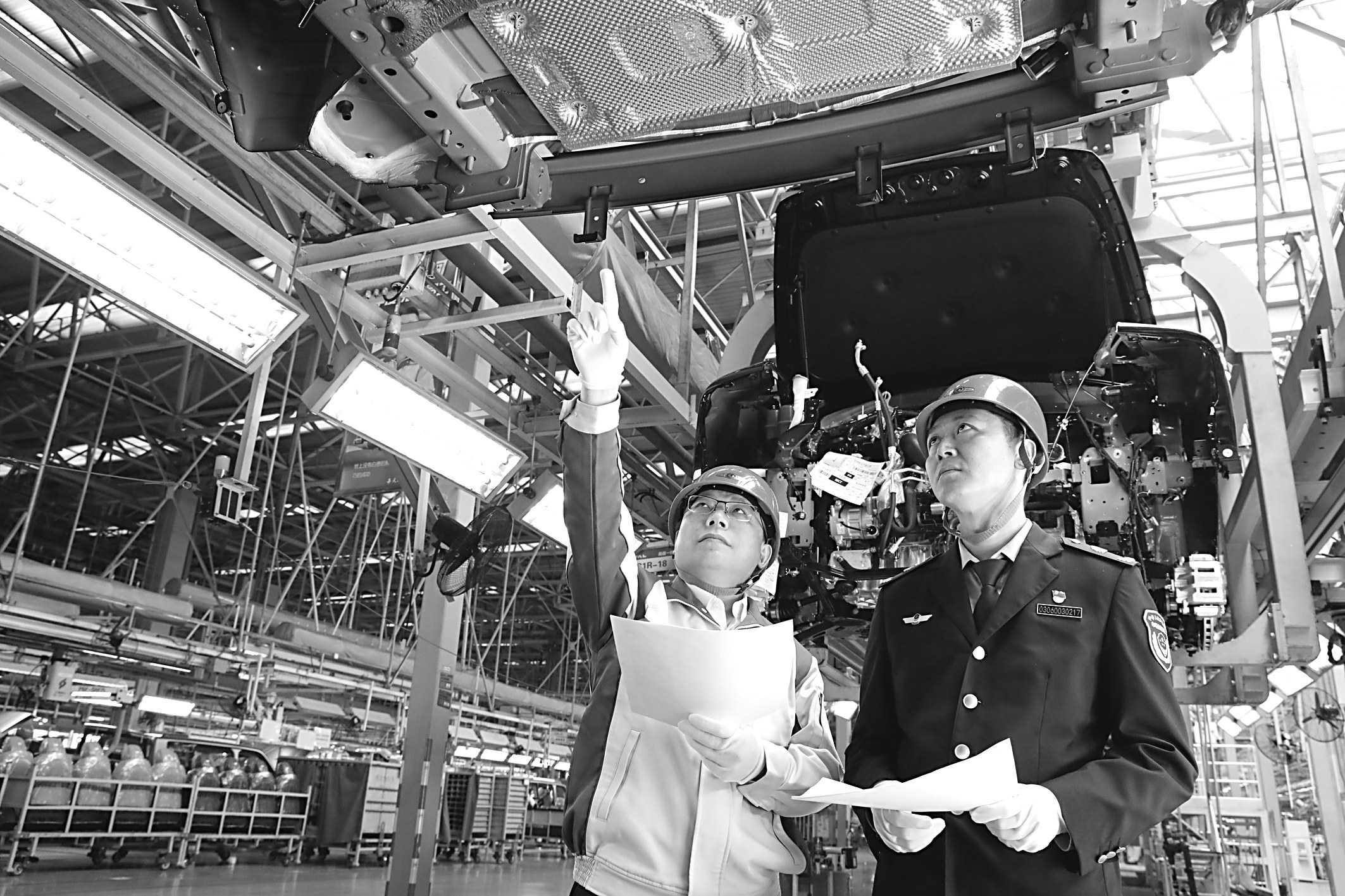 为深入贯彻落实质量强市战略,助力企业提质增效,河北省保定市市场监管局持续深化入企帮扶活动,将先进质量管理理念和方法送至车间,赋能企业高质量发展。图为该局质量发展科负责人日前来到长城汽车股份有限公司生产一线,为企业质量管理“把脉问诊”。□黄汇雨/摄