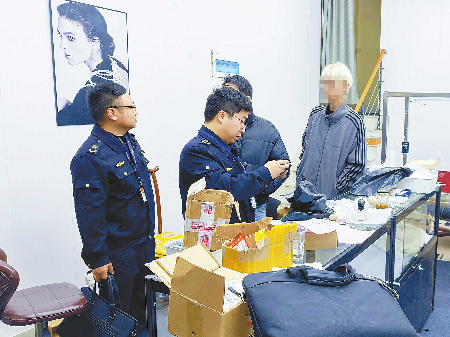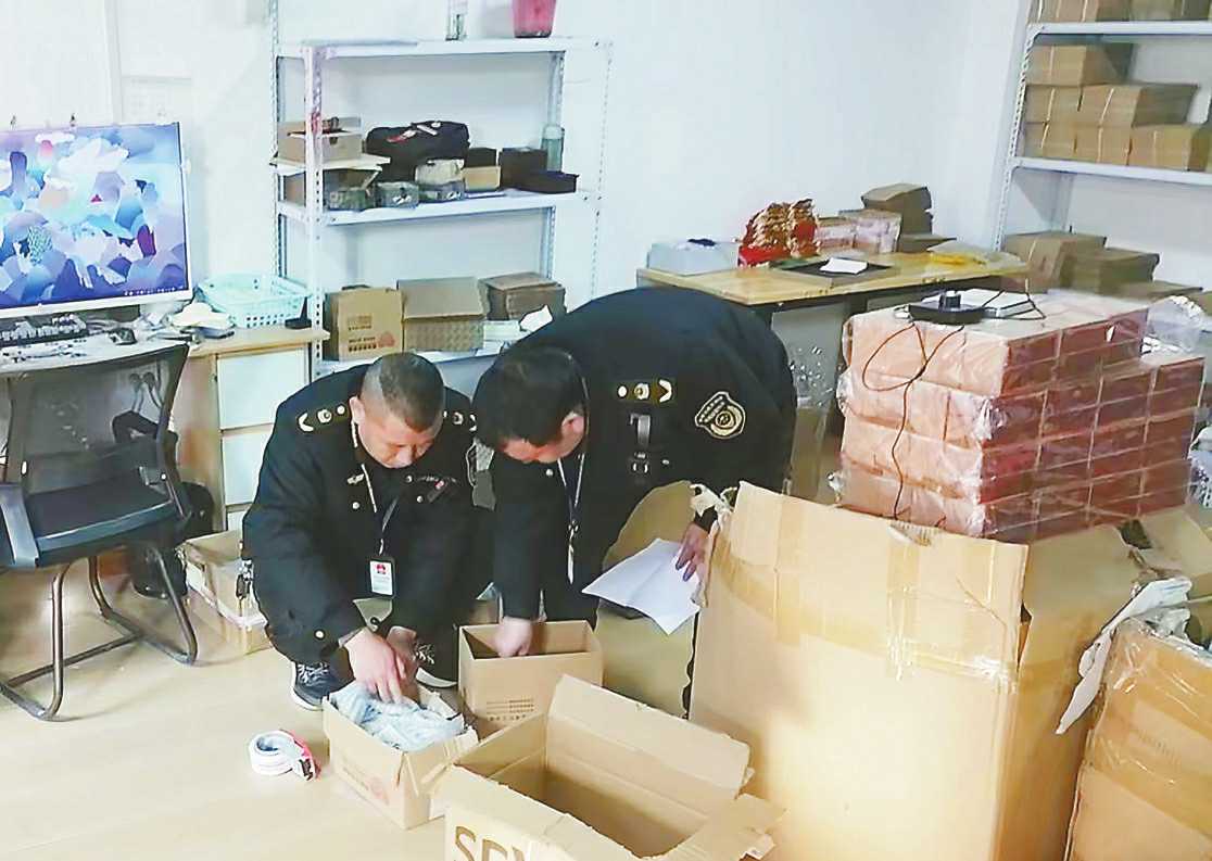 浙江省诸暨市市场监管局查处阮某某直播销售以假充真珍珠案。因销售金额巨大,涉嫌违反《中华人民共和国刑法》,该局将案件移送公安机关。图为2025年3月15日执法人员在现场检查。