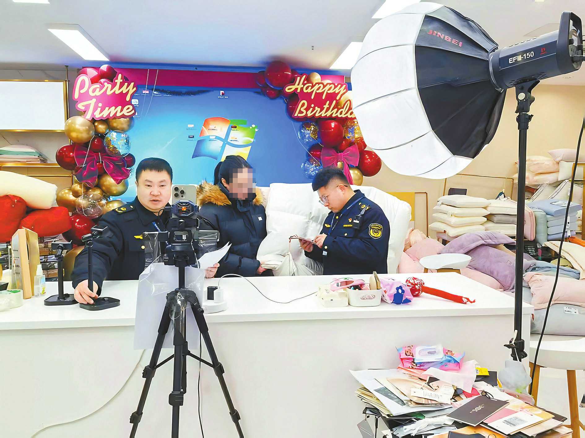 2026年1月22日,江苏省南通市通州区市场监管局二甲分局执法人员对辖区内一家纺织科技有限公司的抖音直播间进行突击检查。