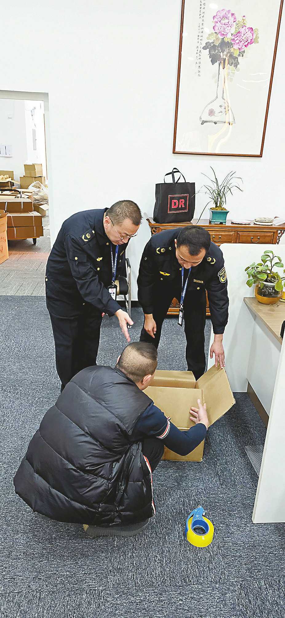 四川省成都市市场监管局查处成都樊星传媒有限公司虚假宣传案,涉事企业被罚款28万元。图为2025年2月12日执法人员在涉事企业进行现场检查。