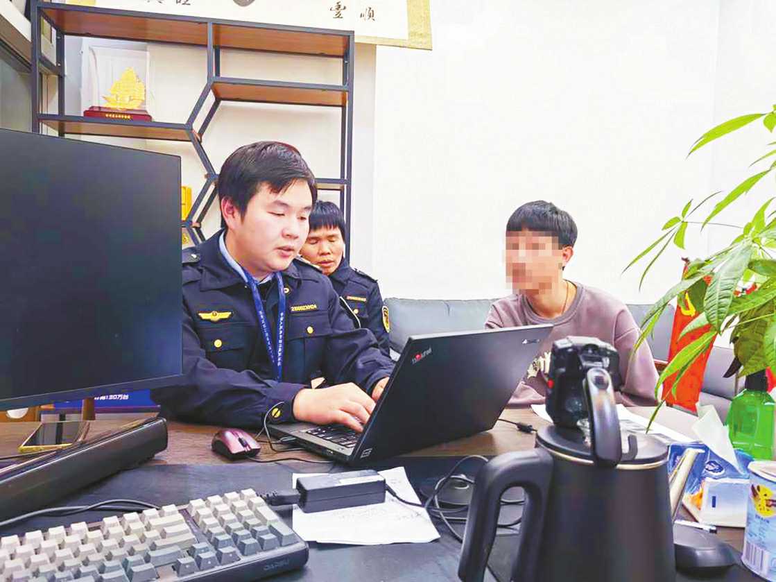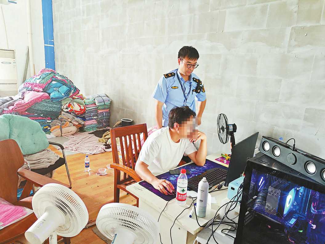 四川省南充市西充县市场监管局查处李某、黄某某、张某某、张某帮助其他经营者进行虚假宣传案,依法对当事人作出罚没27万元的行政处罚。图为2025年9月5日执法人员监督当事人指认作案机房现场。
