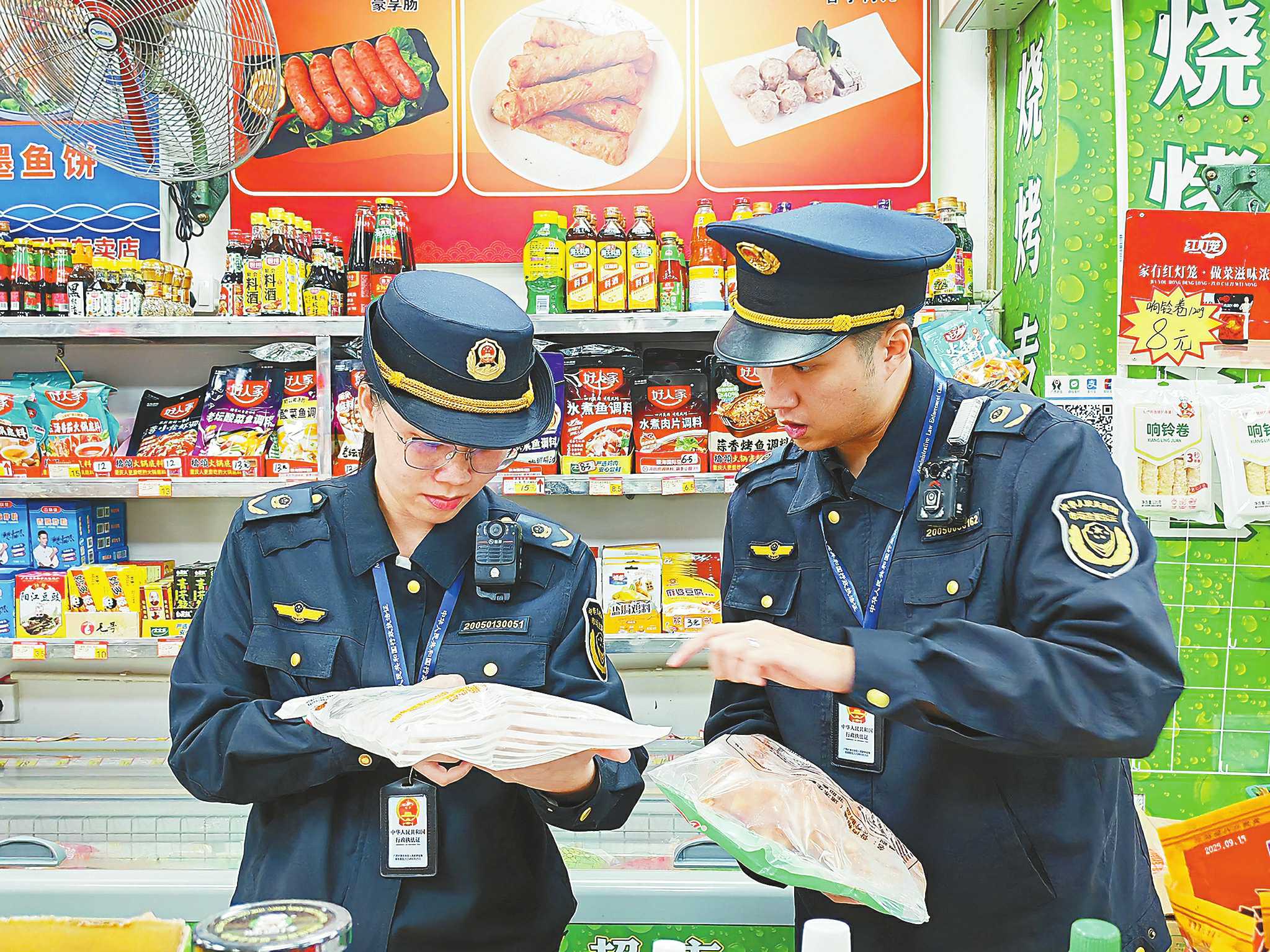 为维护春节前市场秩序稳定,保障人民群众生命财产安全,连日来,广西壮族自治区北海市海城区市场监管局针对辖区商超、农贸市场销售的生鲜肉类等热销产品进行检查。执法人员重点检查产品生产日期、保质期、进货查验记录、储存条件等,严厉打击销售过期、“三无”、假冒伪劣食品等违法行为。□本报记者 孔国俊通讯员 万祥裕/摄影报道