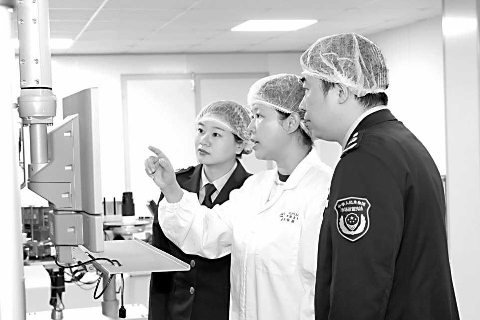 图① 为经营主体提供质量帮扶服务。图② 在超市检查食品安全情况。图③ 深入企业了解发展需求。
